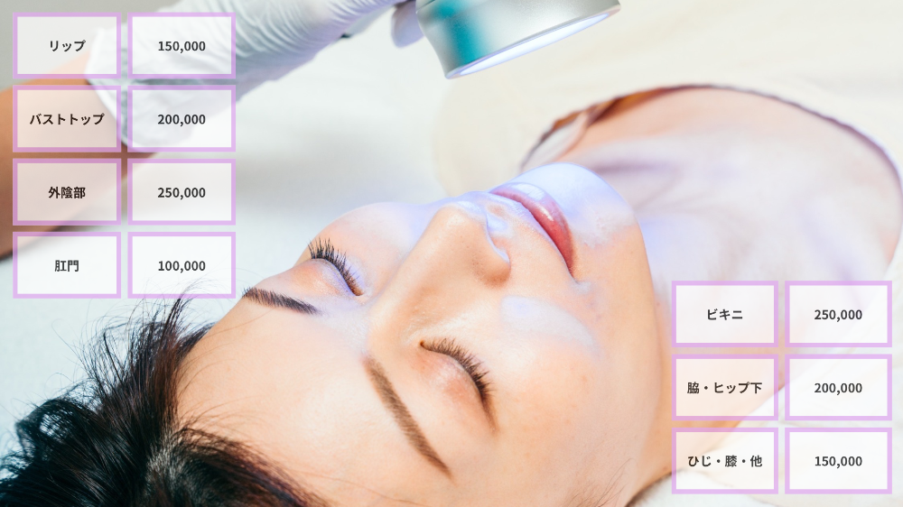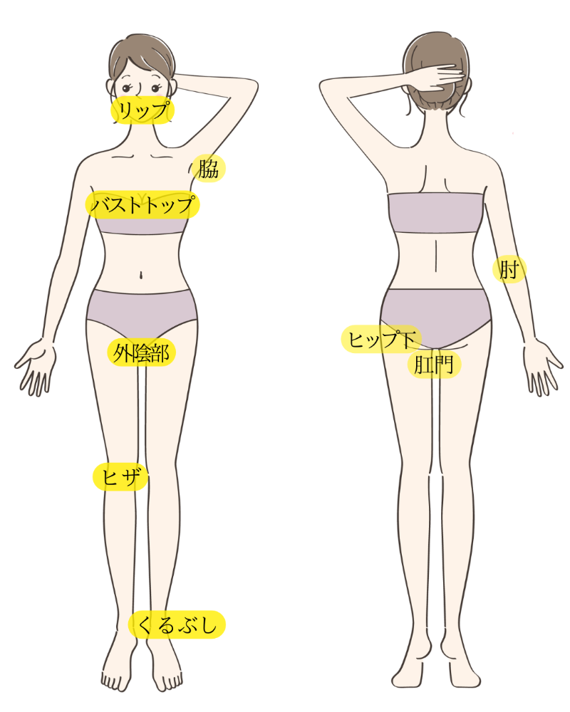 リップやバストトップ・ひざ・ひじなど年齢と共に黒ずんでしまった部位を生まれた頃の赤ちゃんカラーに戻す技術です。